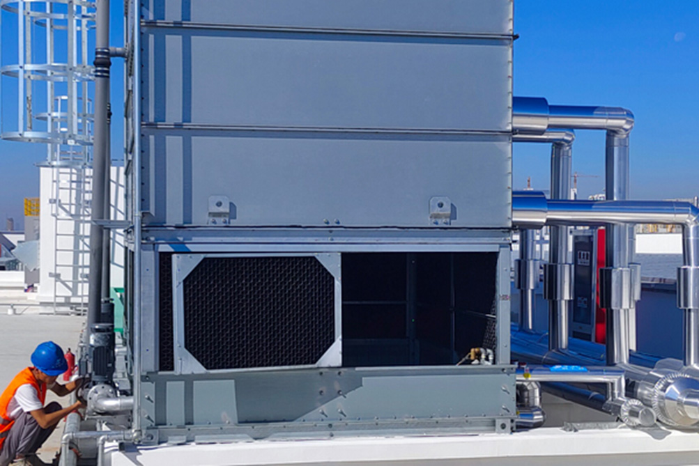 防凍:在寒潮期間,環境溫度可能會很低,導致設備出現凍結、凝固、析出結晶等現象。因此,需要確保設備在寒潮期間保持適當的溫度,避免超出正常工作溫度區間,對于正在使用中的設備,需要開啟循環水塔或冰水機的電輔助加熱功能,配有散熱風扇調節器的循環水塔,可以調節水塔的散熱扇的開啟溫度,另外,為了降低循環冷卻水的凝固點,可在循環的水路中添加適量的乙二醇或防凍液,一般按量添加約35%即可。